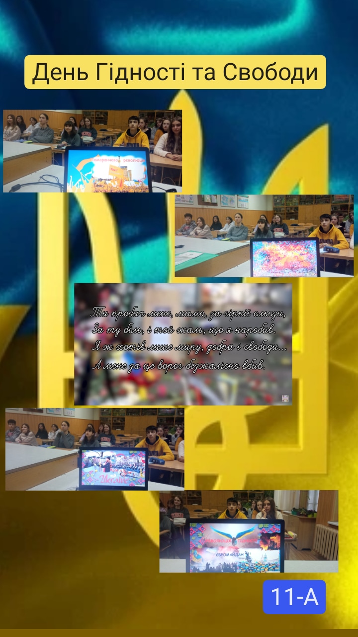 У нашому ліцеї класні керівники разом з учнями провели уроки присвячені Дню Гідності та Свободи. Знову занурилися в історію, пройшли цей доленосний шлях кроками наших визволителей, згадали наших воїнів-захисників і вшанували тих, хто схилив свою голову за наше майбутнє.