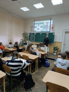 До Міжнародного дня прав людини у нашому закладі був проведений урок у 7-А класі «Як звернутися до поліції» вчителькою історії та правознавства Анжелою Карімовою спільно з інспектором відділу Служби освітньої безпеки Станіславом Мельником.
