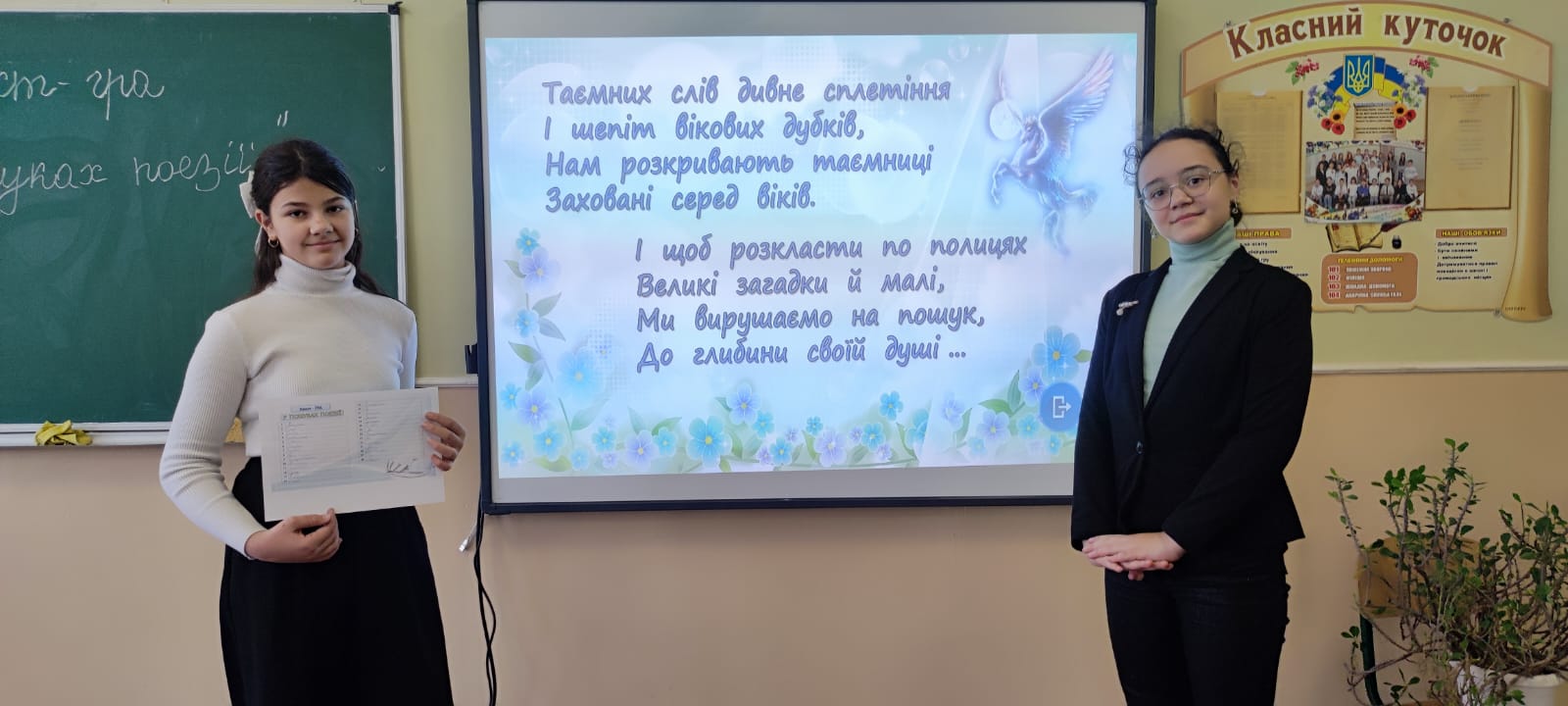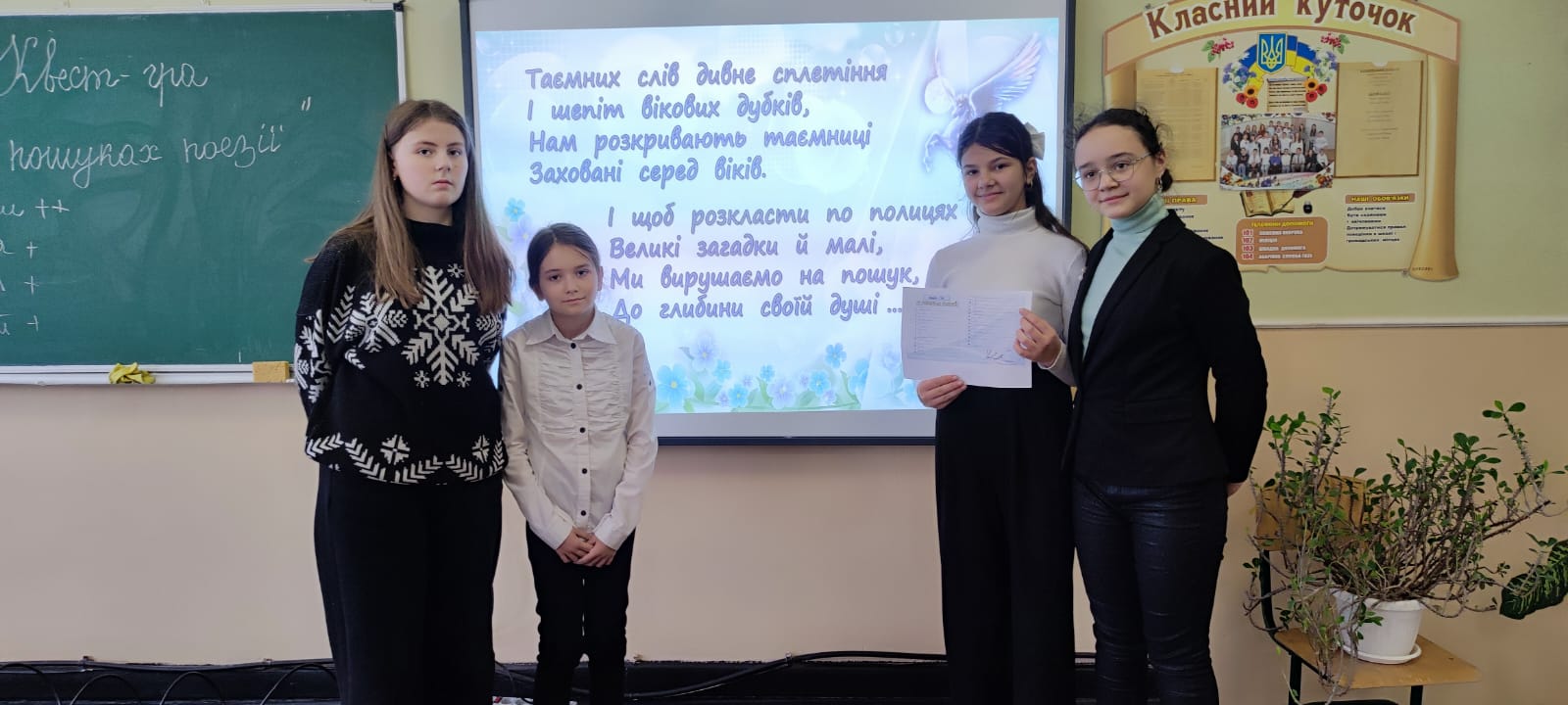 15 січня учні 6-Б класу взяли участь у захоплюючому літературному квесті “У пошуках поезії”. Протягом гри школярі розгадували загадки, шаради, виконували творчі завдання та знаходили заховані вірші відомих поетів. Особливий ентузіазм викликало завдання, де учні мали створити власні поетичні рядки за допомогою знайдених слів. Діти не лише весело провели час, але й поглибили свої знання з української літератури. Завершився квест спільним читанням улюблених віршів. Такі інтерактивні заходи допомагають прищепити школярам любов до поезії та рідного слова.