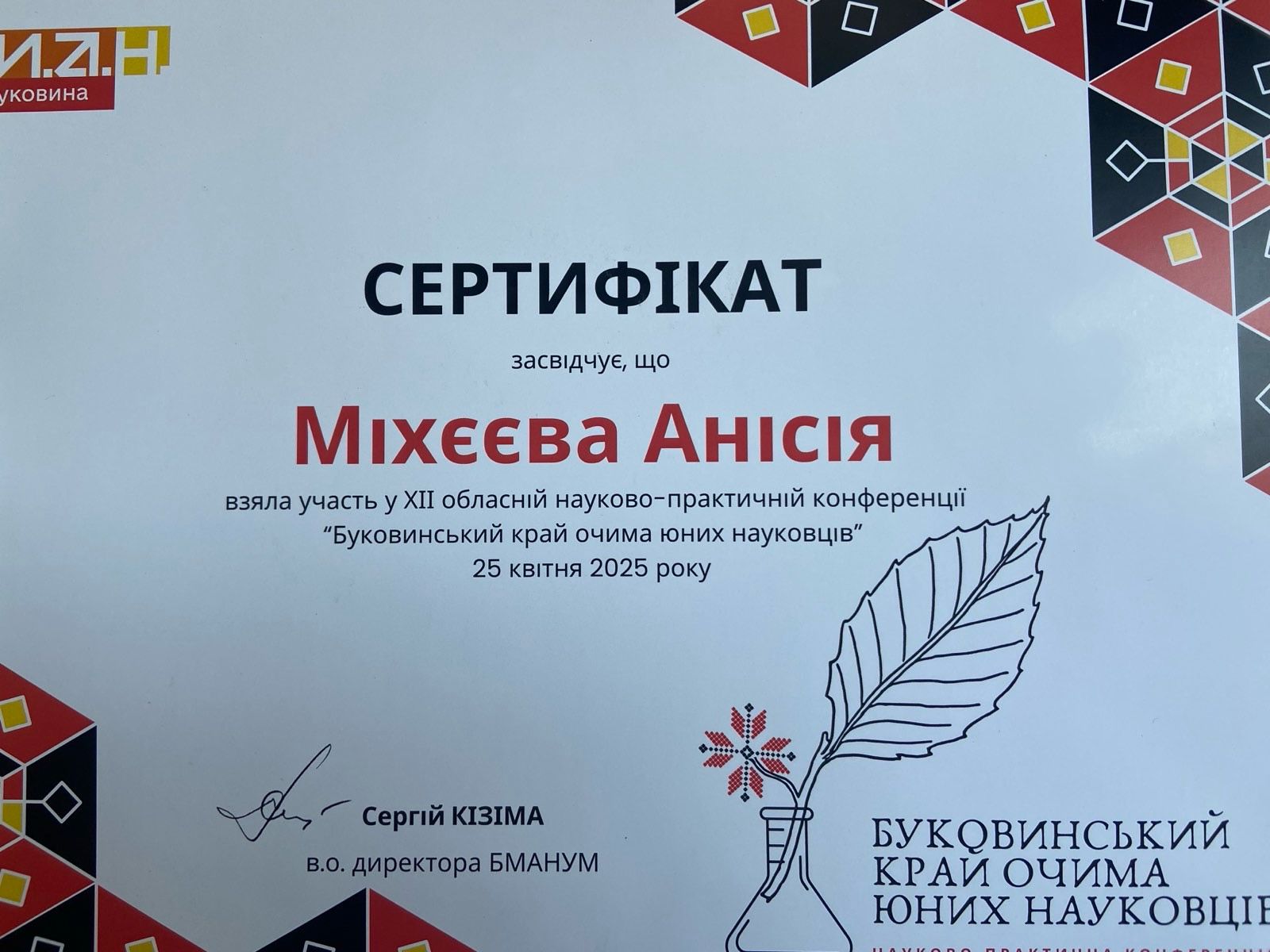 З метою популяризації досвіду науково-дослідницької роботи учнів закладів освіти, ознайомлення з культурним надбанням та багатством краю, його природними особливостями, за підтримки Департаменту освіти і науки Буковинська Мала академія наук учнівської молоді провела 25 квітня ХІІ обласну учнівську науково-практичну конференцію «Буковинський край очима юних науковців».