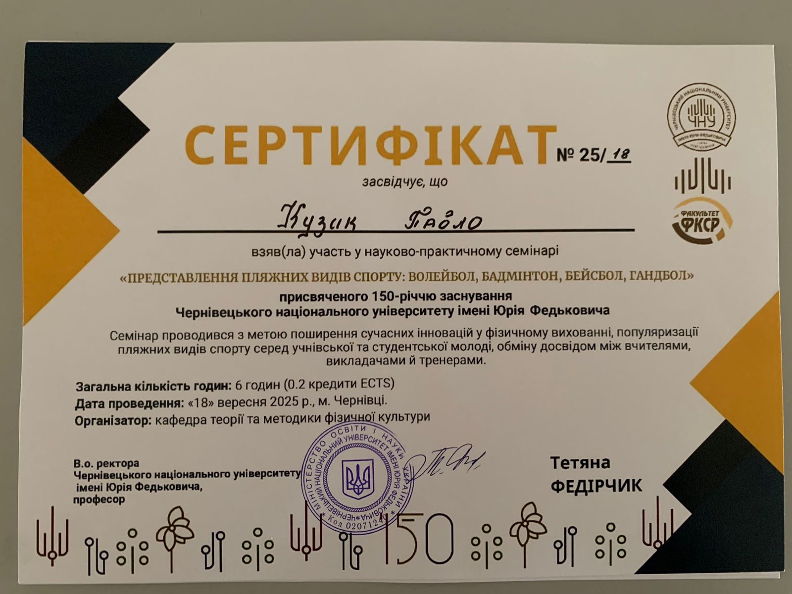 що відбувся 18 вересня 2025 року на спортивному майданчику стадіону «Буковина» м. Чернівці.