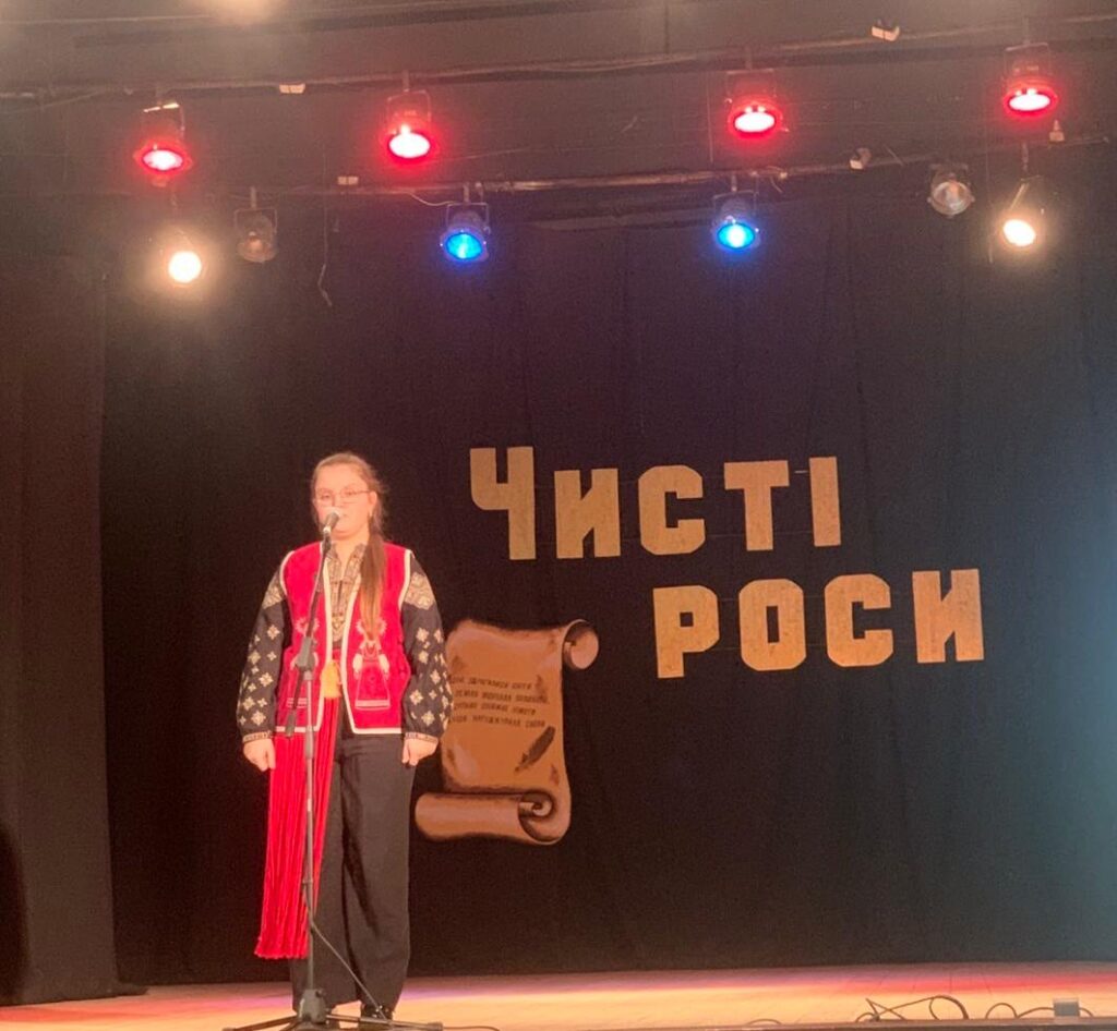 Спельчук Ніколета, учениця 8-А класу Чернівецького ліцею №12 «Ювілейний, блискуче виступила з декламацією вірша талановитої буковинської поетеси Іванни Струк та здобула перемогу🏆 у І етапі Всеукраїнського фестивалю дитячої та юнацької творчості «Чисті роси» у номінації «Літературна творчість»📚Талант, творче натхнення, любов до слова вже сьогодні приносять чудові результати💕 Бажаємо не зупинятися на досягнутому, впевнено крокувати вперед, відкривати нові горизонти та надихати інших своїми здобутками🌟