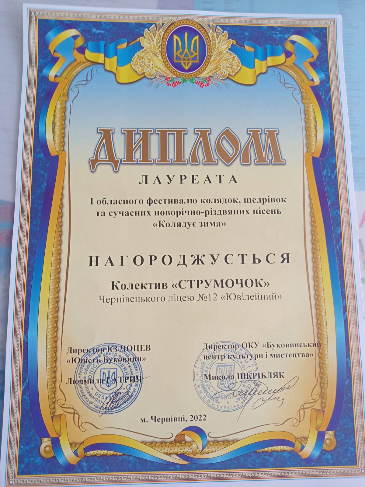 За сприяння Чернівецької обласної ради 14 січня 2022 року у Чернівцях відбувся перший обласний фестиваль колядок, щедрівок та сучасних новорічно-різдвяних пісень «Колядує зима».