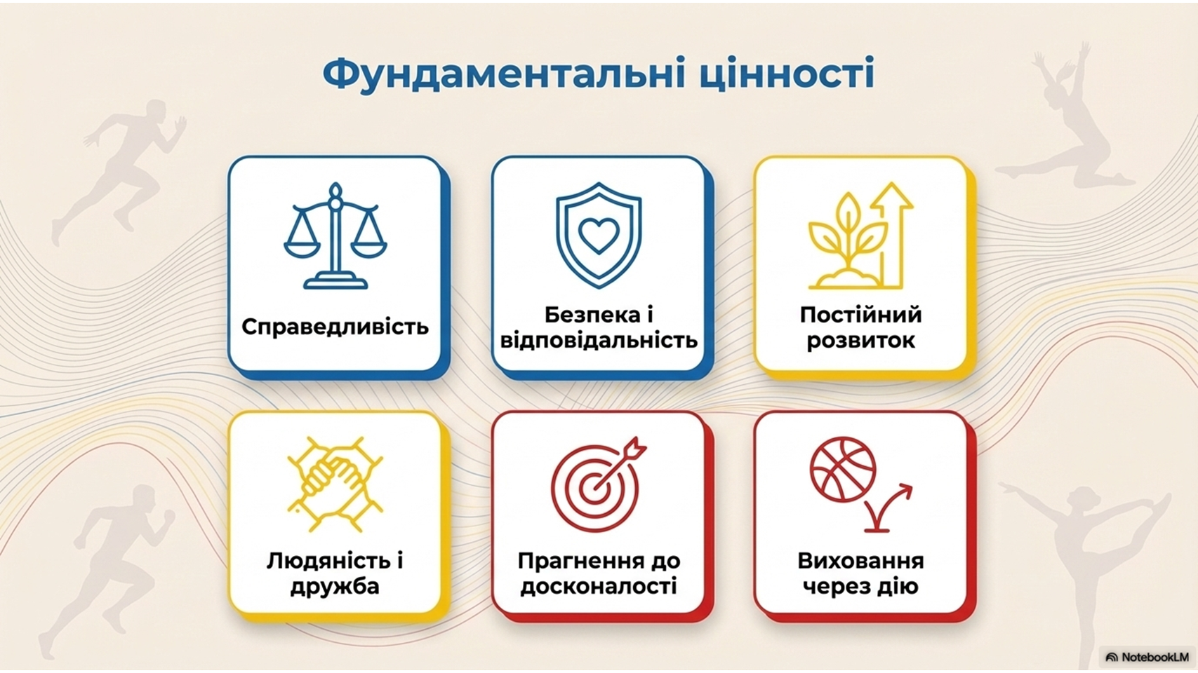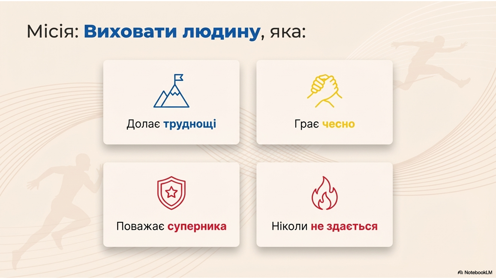 Здоров’я, відповідальність, взаємопідтримка та командна робота.