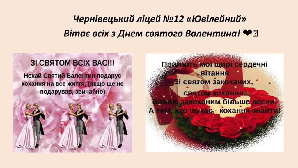 Вітаємо Валентинів, Валентинок та всіх із днем закоханих! 14.02.202221.02.2022 Чернівецький ліцей №12 "Ювілейний" Про святкування у ліцеї читайте в Instagram